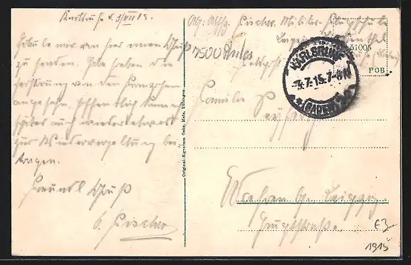 alte Ansichtskarte, gelaufen 1915, Eckknick re. oben, Stempelspur, guter Zustand