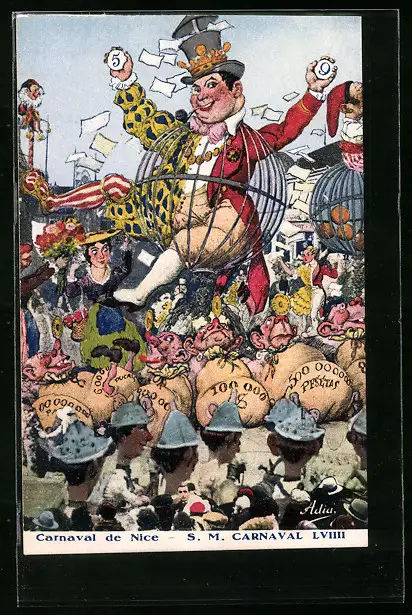 Künstler-AK Karneval in Nizza mit unansehnlich dargestellten Artisten