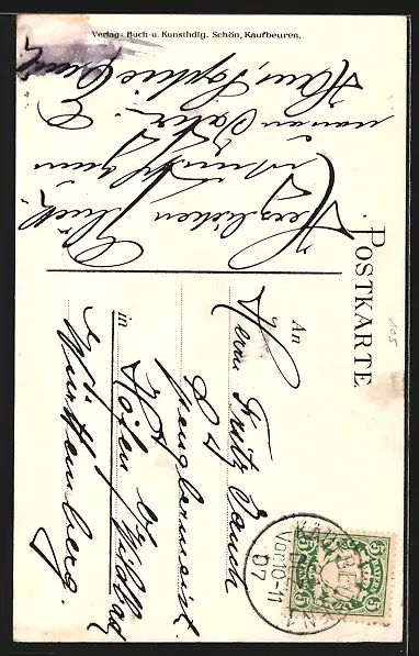alte Ansichtskarte, gelaufen 1907, Stempelspur, Eckknick li. unten, kleiner Einriss li. mittig, guter Zustand
