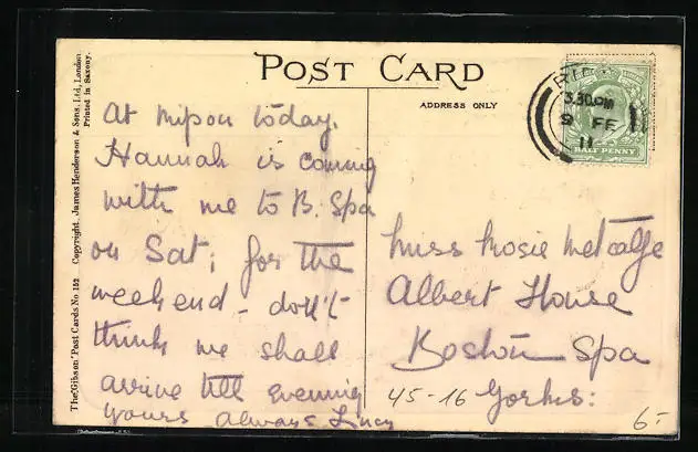 Personenbezogene Daten auf der Rückseite der Karte wurden durch blauen Textmarker unkenntlich gemacht. Die blauen Stellen sind auf die Vorderseite durchgeweicht und wirken sich negativ auf das Postkartenfoto aus