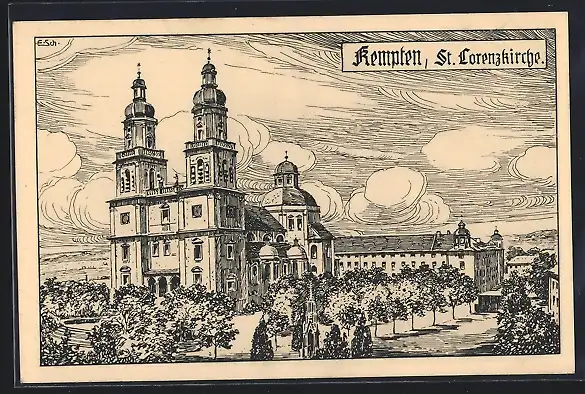 Künstler-AK Kempten / Allgäu, Ansicht der St. Lorenzkirche
