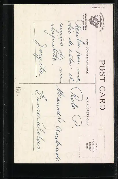 Personenbezogene Daten auf der Rückseite der Karte wurden durch blauen Textmarker unkenntlich gemacht. Die blauen Stellen sind auf die Vorderseite durchgeweicht und wirken sich negativ auf das Postkartenfoto aus