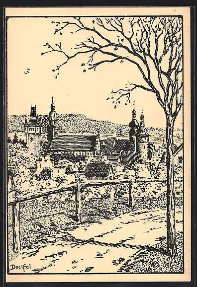 Künstler-AK Kitzingen a. M., Blick vom Wasserwerk