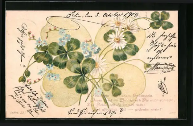 Künstler-AK Kleeblatt mit Gänseblümchen