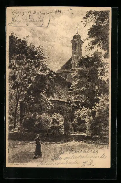 Künstler-AK Klein-Machnow, Idyll an der Kirche
