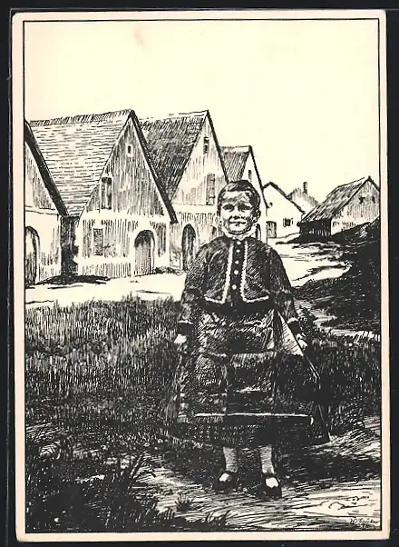 Künstler-AK Kleine Schwäbin aus den Ofener Bergen