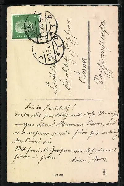 alte Ansichtskarte, gelaufen 1930, Eckknick re. oben, guter Zustand