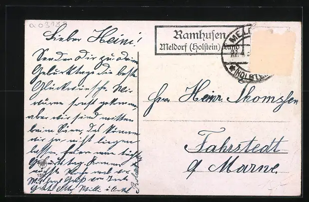 alte Ansichtskarte, gelaufen, Briefmarke entfernt, rückseitig Oberflächenschaden, guter Zustand