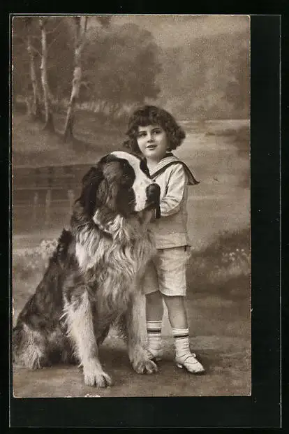Künstler-AK Knabe im Matrosenanzug mit Bernhardiner