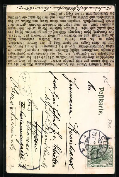 alte Ansichtskarte, gelaufen 1911, rückseitig Klebe- und Papierreste, guter Zustand