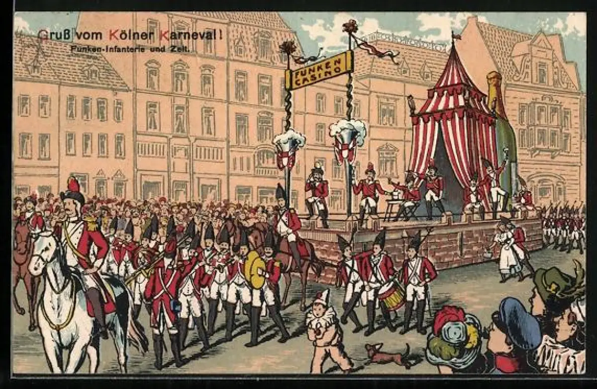 Künstler-AK Köln, Funken-Infanterie und Zelt, Kölner Karneval