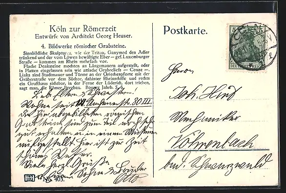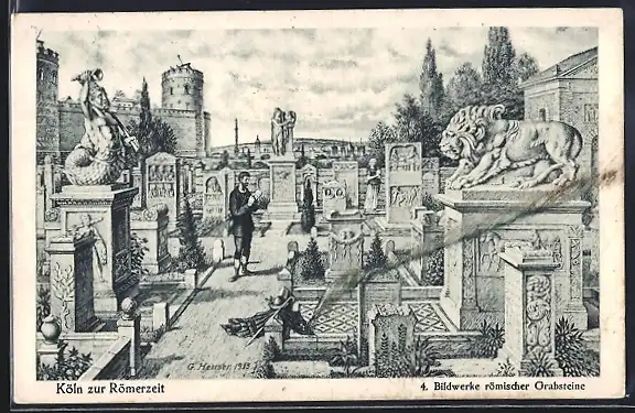 Künstler-AK Köln, Köln zur Römerzeit, Bildwerke römischer Grabsteine