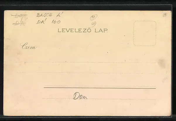 Personenbezogene Daten auf der Rückseite der Karte wurden durch blauen Textmarker unkenntlich gemacht. Die blauen Stellen sind auf die Vorderseite durchgeweicht und wirken sich negativ auf das Postkartenfoto aus