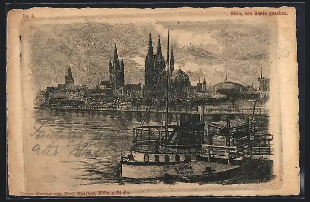 Künstler-AK Köln, Teilansicht mit Dom von Deutz gesehen