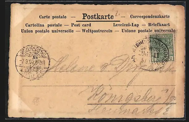 alte Ansichtskarte, gelaufen 1900, Albumspuren, guter Zustand