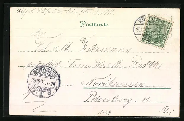 alte Ansichtskarte, gelaufen 1901, guter Zustand