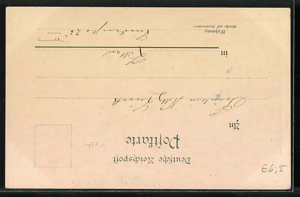 Personenbezogene Daten auf der Rückseite der Karte wurden durch blauen Textmarker unkenntlich gemacht. Die blauen Stellen sind auf die Vorderseite durchgeweicht und wirken sich negativ auf das Postkartenfoto aus