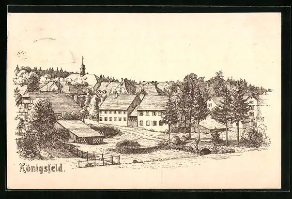 Künstler-AK Königsfeld, Ortspartie mit Kirche