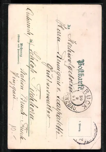 alte Ansichtskarte, gelaufen 1901, Briefmarke entfernt, Eckknick unten li., guter Zustand