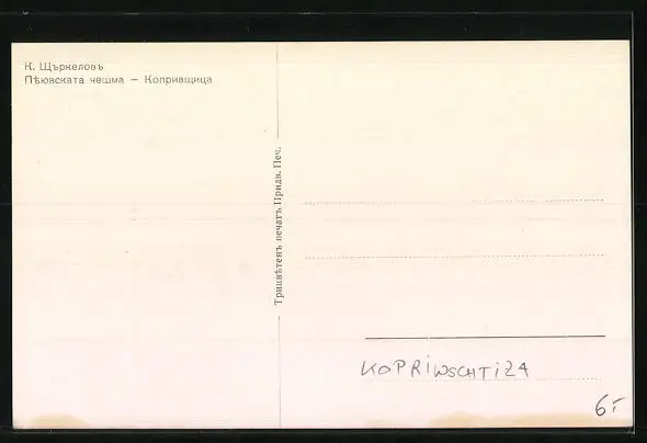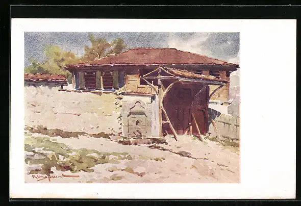 Künstler-AK Kopriwschtiza, Teilansicht mit Gebäude