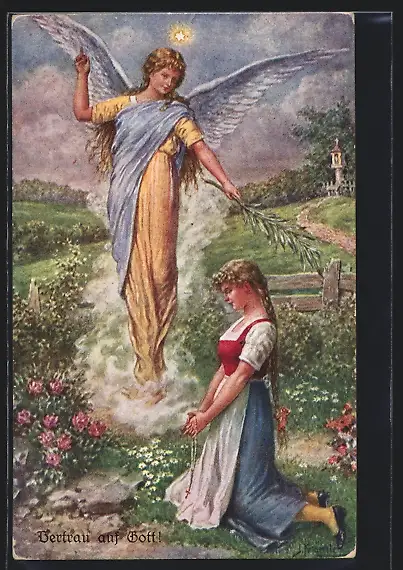 Künstler-AK Kränzle: Engel segnet betendes Fräulein