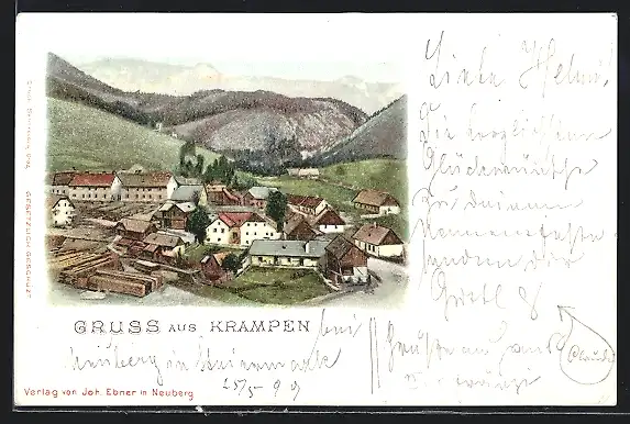 Künstler-AK Krampen, Teilansicht mit Bergen