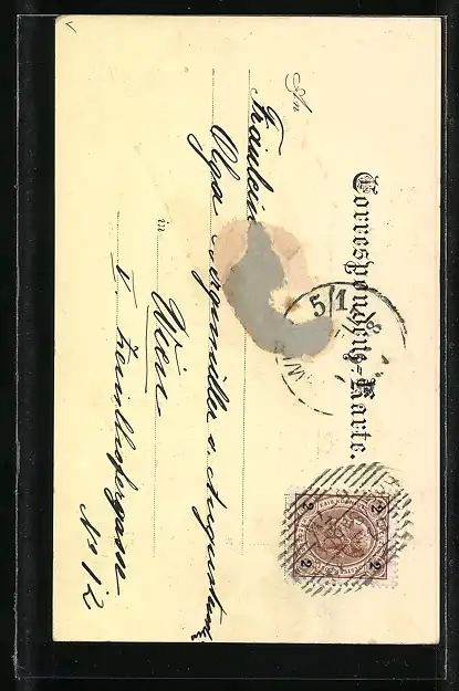 gelaufen 1898, rückseitig Klebe- und Papierreste, rückseitig Oberflächenschaden, guter Zustand