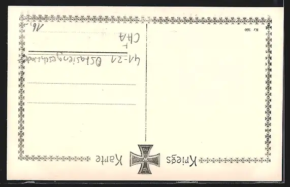 Personenbezogene Daten auf der Rückseite der Karte wurden durch blauen Textmarker unkenntlich gemacht. Die blauen Stellen sind auf die Vorderseite durchgeweicht und wirken sich negativ auf das Postkartenfoto aus