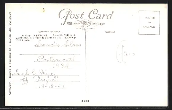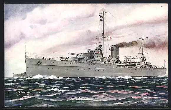 Künstler-AK Kriegsschiff HMS Neptune bei unruhiger See