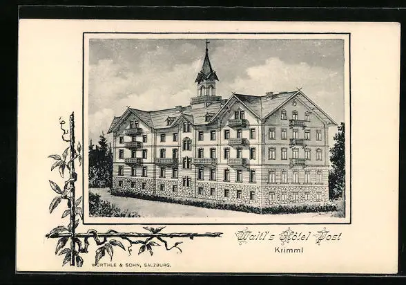 Künstler-AK Krimml, Waltl's Hotel Post