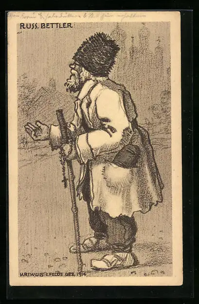 Künstler-AK Kriwub: Russischer Bettler mit Stock