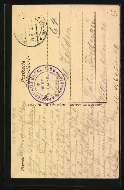 alte Ansichtskarte, gelaufen 1916, guter Zustand
