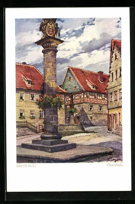 Künstler-AK Kronach, Ehrensäule, Gasthaus