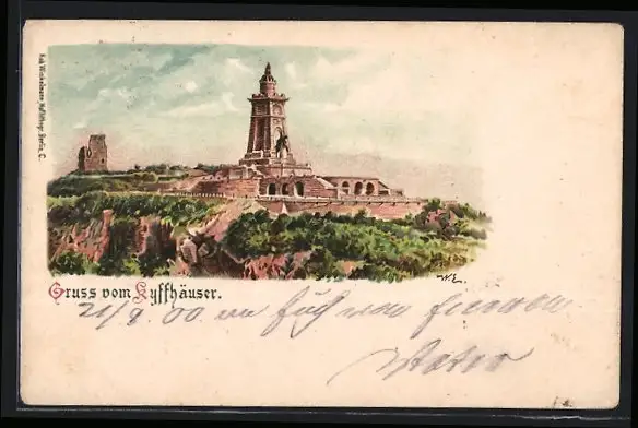 Künstler-AK Kyffhäuser, Blick auf das Denkmal