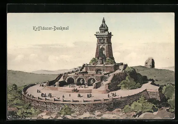 Künstler-AK Kyffhäuser, Blick zum Denkmal