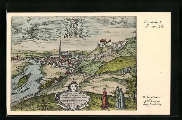 Künstler-AK Landshut a. I., Ortsansicht um 1570