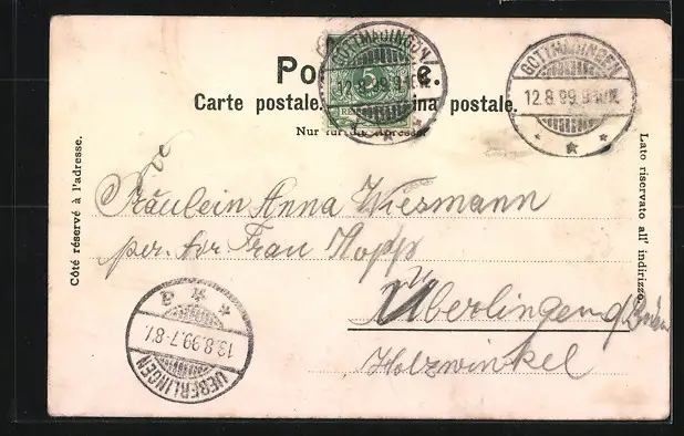 alte Ansichtskarte, gelaufen 1899, Eckschaden oben li., guter Zustand