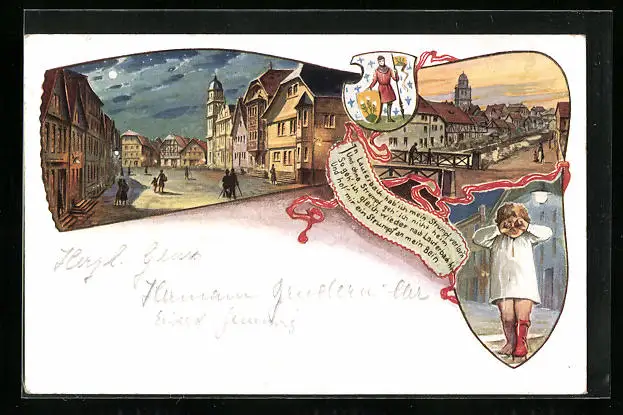 Künstler-AK Lauterbach, Ortsansicht, Weinendes Kind