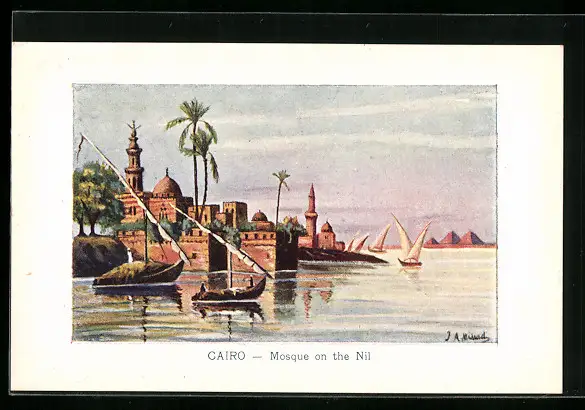 Künstler-AK Le Caire, Mosquée au bord du Nil