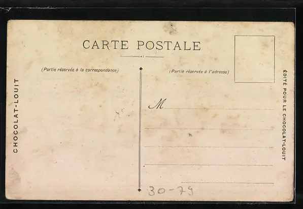 Personenbezogene Daten auf der Rückseite der Karte wurden durch blauen Textmarker unkenntlich gemacht. Die blauen Stellen sind auf die Vorderseite durchgeweicht und wirken sich negativ auf das Postkartenfoto aus