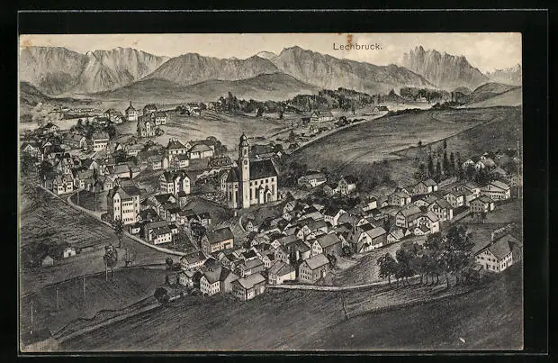 Künstler-AK Lechbruck, Teilansicht mit Kirche