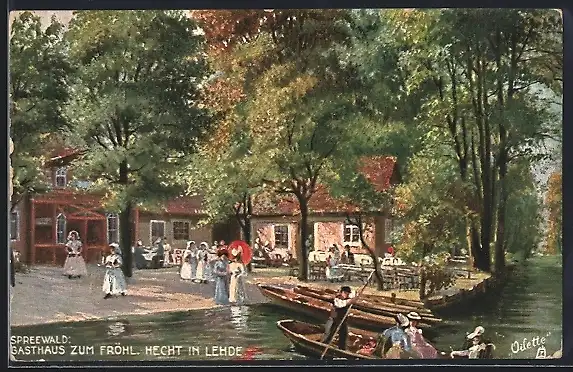 Künstler-AK Lehde / Spreewald, Gasthaus zum fröhlichen Hecht