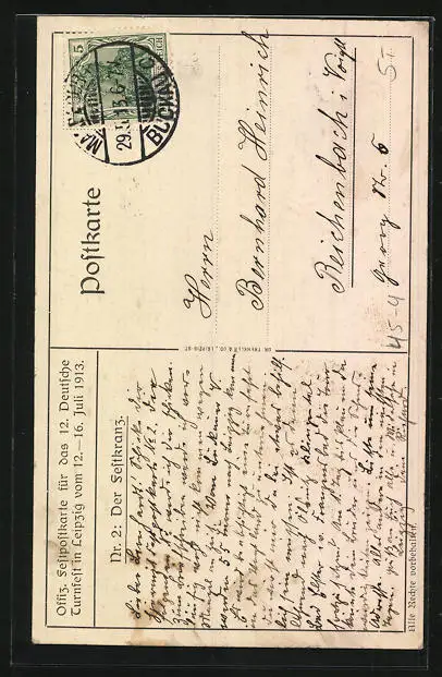 Künstler-AK Leipzig, XII. Deutsches Turnfest 1913, Turner bindet den Festkranz