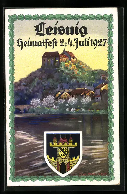 Künstler-AK Leisnig, Heimatfest 1927 mit Wappen