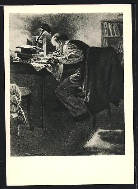 Künstler-AK Lenin beim Arbeiten an seinem Schreibtisch