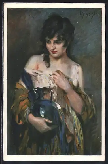 Künstler-AK Leopold Schmutzler: Dame mit Amphore