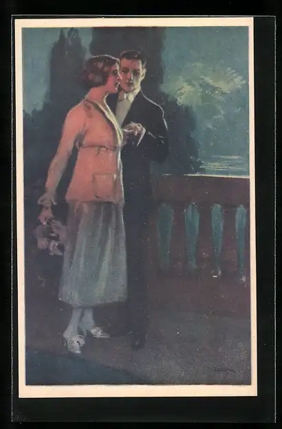 Künstler-AK Leopoldo Metlicovitz: Paar beim nächtlichen Stelldichein