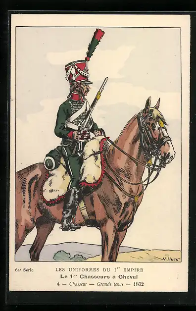 Künstler-AK Les Uniformes du I. Empire, Le I. Chasseurs à Cheval-Chasseur Grande tenue 1802