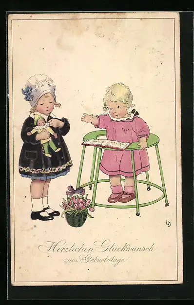 Künstler-AK Lia Döring: 1. Geburtstag eines Kindes