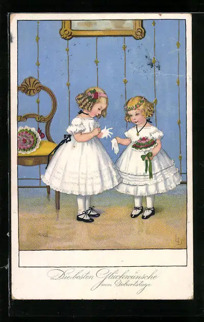 Künstler-AK Lia Döring: Zwei Mädchen in weissen Kleidern